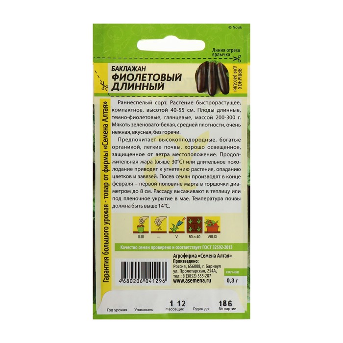 Семена Баклажан «Фиолетовый длинный», раннеспелый, ц/п, 0,3 г