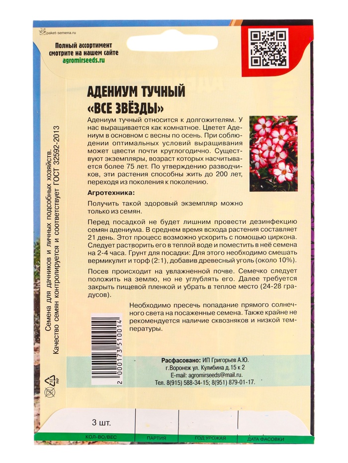 Семена цветов Адениум Все Звёзды 3шт. 12.29 г.