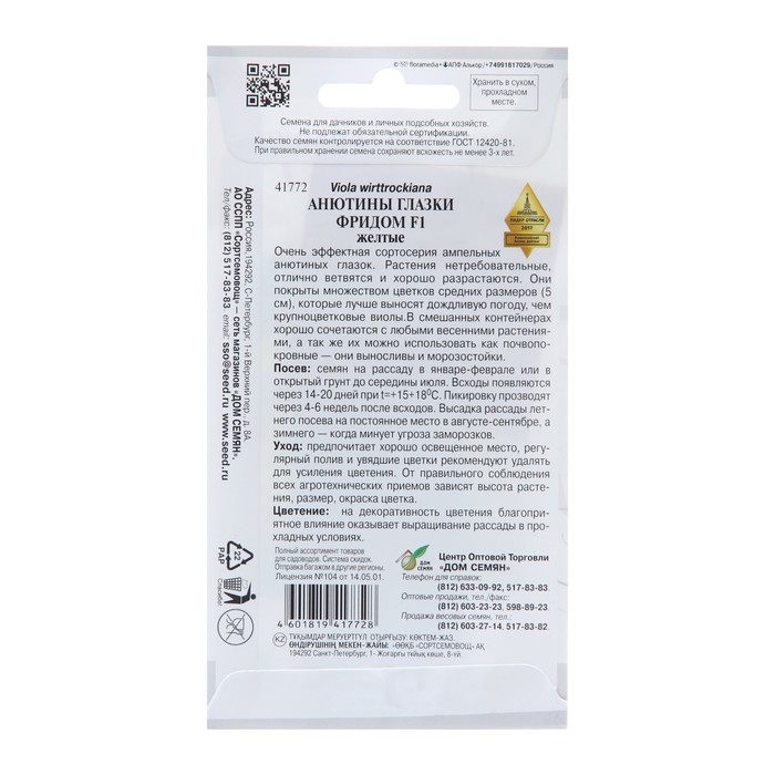 Семена цветов Анютины глазки "Фридом F1" желтые, 5 шт