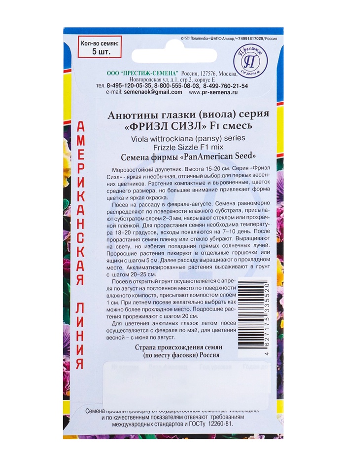 Семена цветов Анютины глазки витторка "Фризл Сизл", Смесь, 5 шт
