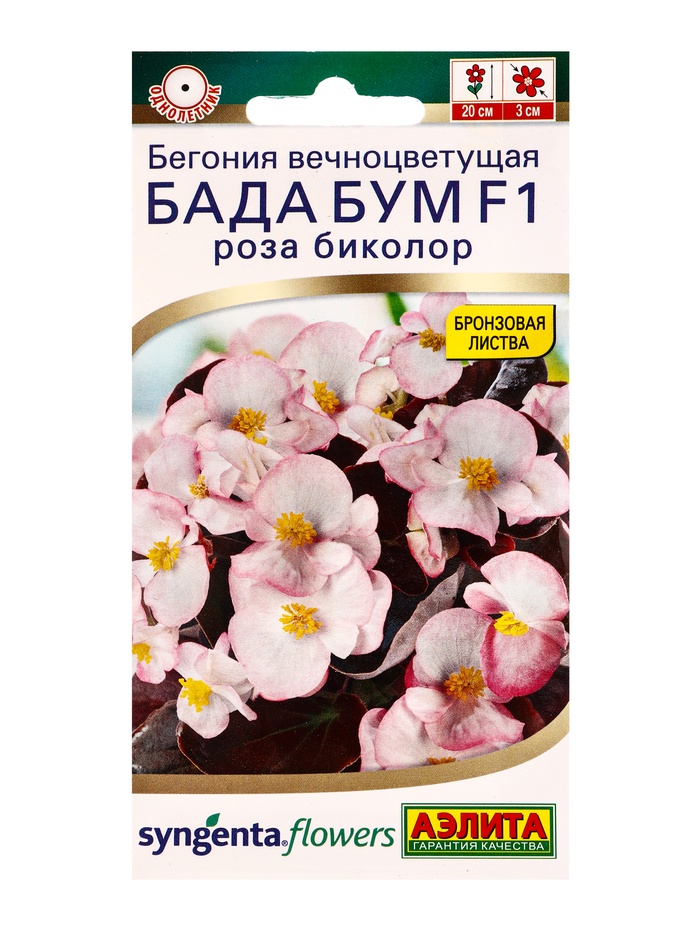 Семена цветов Бегония Бада бум F1 роза биколор (драже в пробирке) Спецсерия Syngenta, Ц/П,5 шт. 109