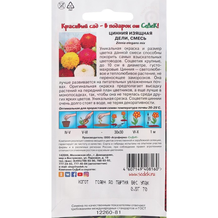 Семена цветов Цинния "Дели "0.5 г