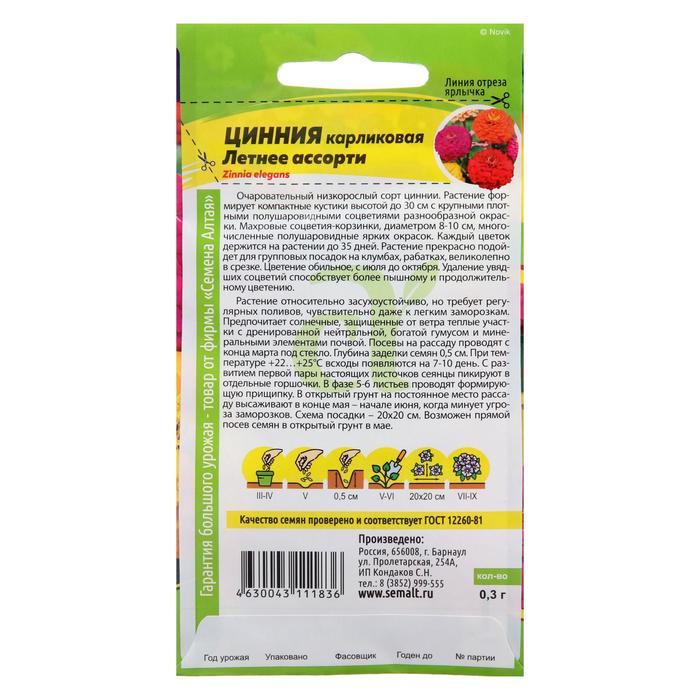 Семена цветов Цинния "Летнее Ассорти", Сем. Алт, ц/п, 0,3 г
