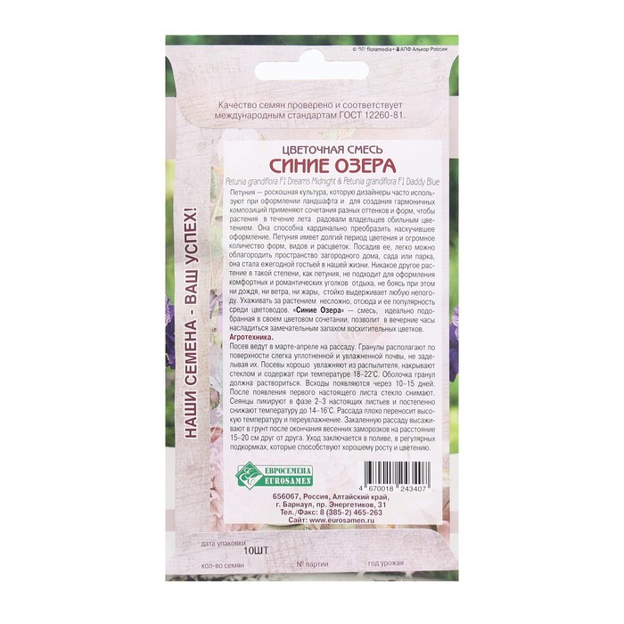 Семена Цветов Цветочная смесь Синие озера, 10 драже