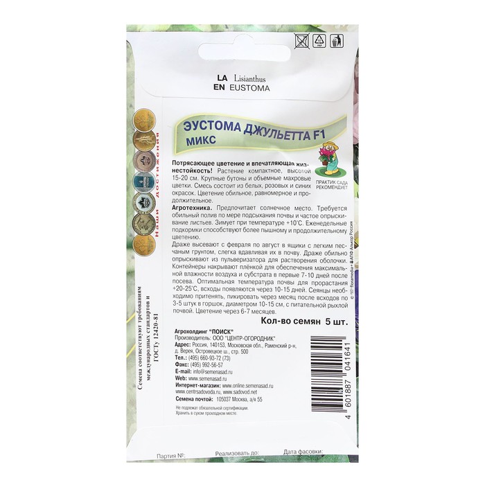 Семена цветов Эустома "Джульетта F1 Микс" 5 шт
