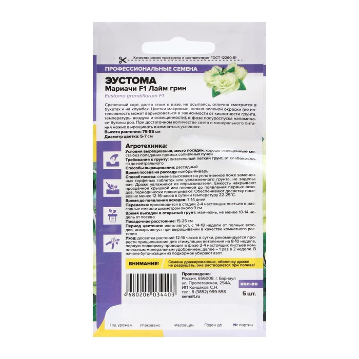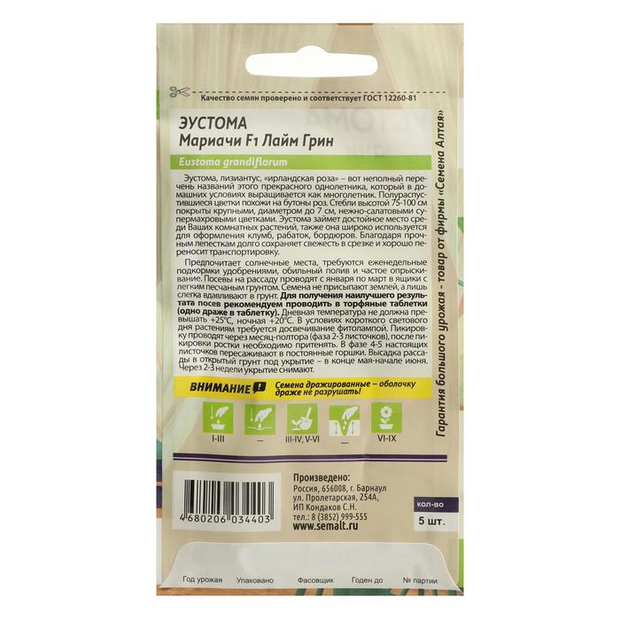 Семена цветов Эустома Мариачи "Лайм Грин", Сем. Алт, ц/п, 5 шт