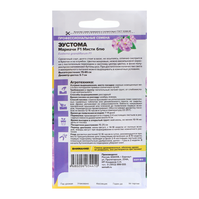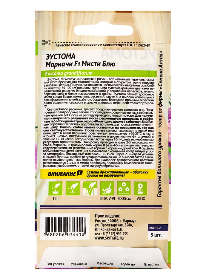 Семена цветов Эустома "Мариачи Мисти", ц/п, Блю/Сем Алт/ц/п, 5 шт