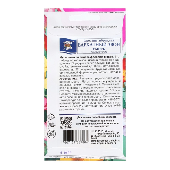 Семена цветов Фрезия гибридная «БАРХАТНЫЙ ЗВОН», смесь, 0.04 г, «УРОЖАЙ УДАЧИ»
