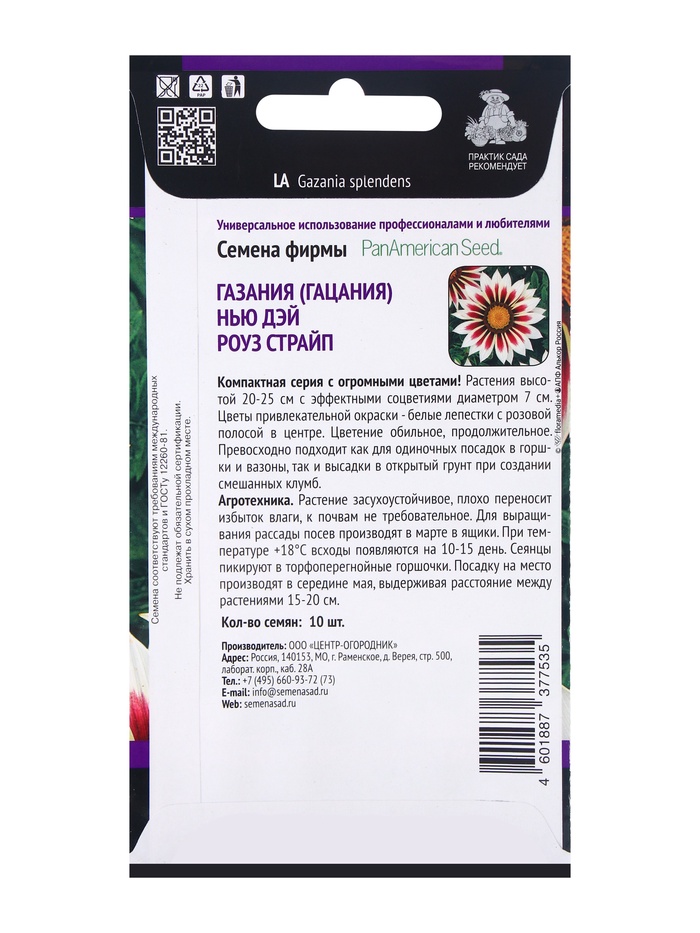 Семена цветов Газания Нью Дэй Роуз Страйп, для балкона, веранды, цветника, однолетник, низкорослая10 шт.