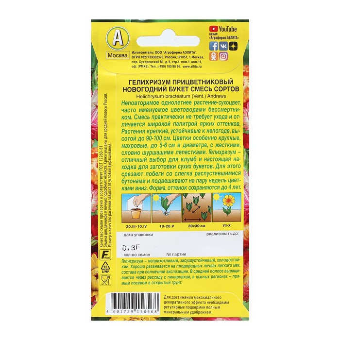 Семена Цветов Гелихризиум "Новогодний букет", смесь сортов, 0,3 г