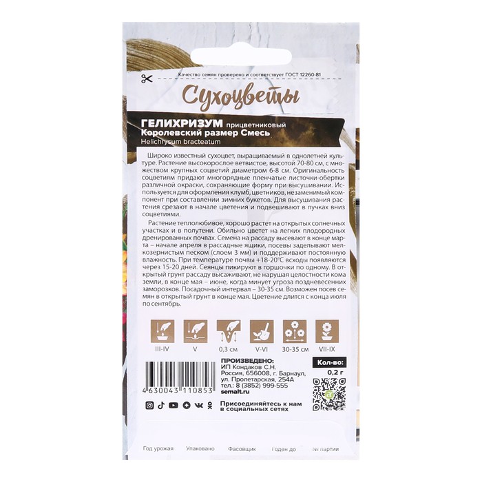 Семена цветов Гелихризум "Королевский размер", смесь, Сем. Алт, ц/п, 0,1 г