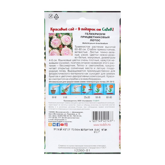 Семена цветов Гелихризум «Лотос», 0.2 г
