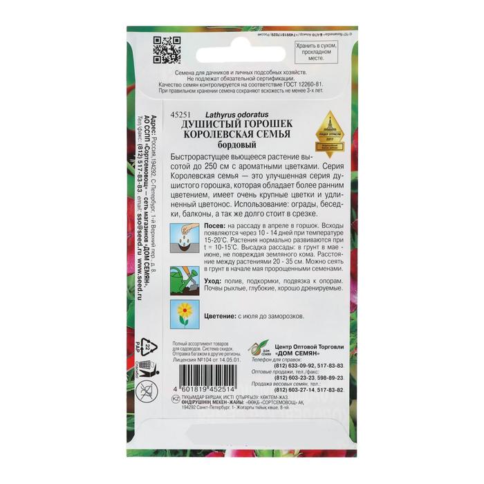 Семена цветов Горошек душистый "Королевская семья", бордовый, 6 шт