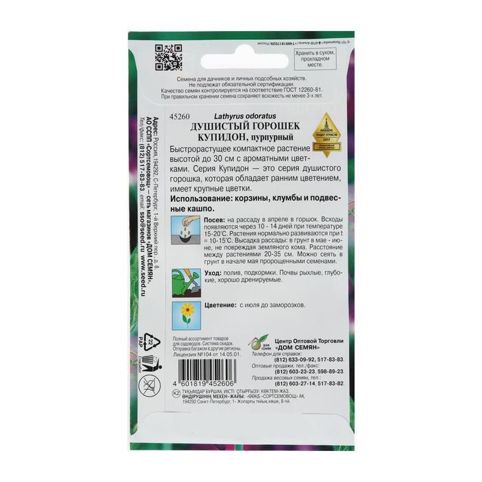 Семена цветов Горошек душистый "Купидон", пурпурный, 6 шт