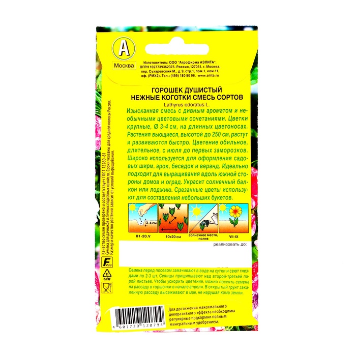 Семена цветов Горошек душистый "Нежные коготки", смесь окрасок, О, 0,5 г