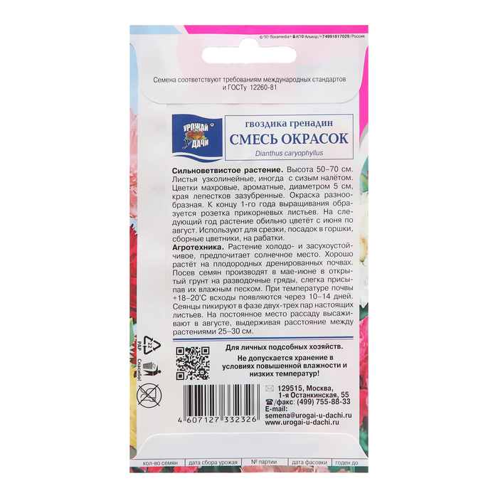 Семена цветов Гвоздика «Гренадин», Смесь окрасок, 0.1 г