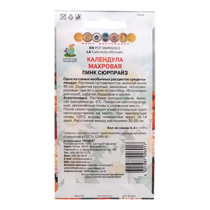Семена цветов Календула махровая "Пинк сюрпрайз", 0,4 г