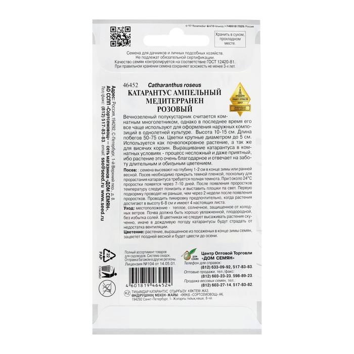 Семена цветов Катарантус амп. Медитерранен, розовый ,7 шт