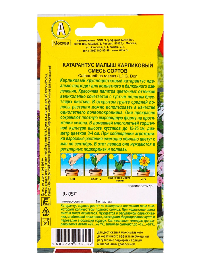 Семена цветов Катарантус Малыш карликовый, смесь сортов Цветущий балкон, Ц/П,0,05 г