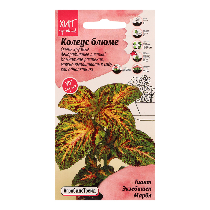 Семена Цветов Колеус блюме «Гиант Экзибишен Марбл», 10 шт., «Агросидстрейд»