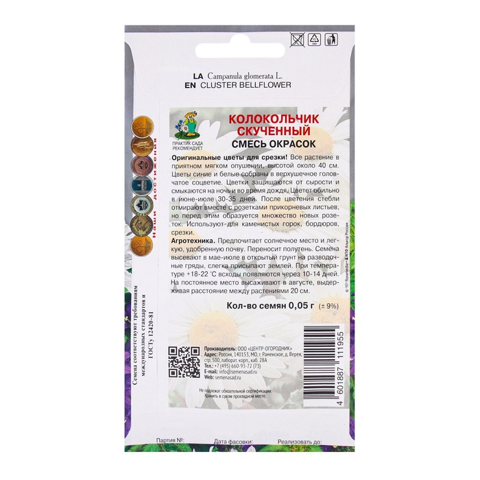 Семена цветов Колокольчик скученный Смесь окрасок, 0,05гр