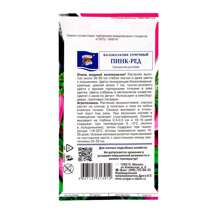Семена цветов Колокольчик "Точечный Пинк Ред", 0,015 г