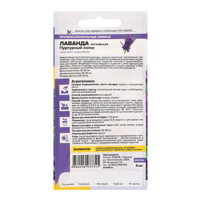 Семена цветов Лаванда "Пурпурный колос",набор 5 шт