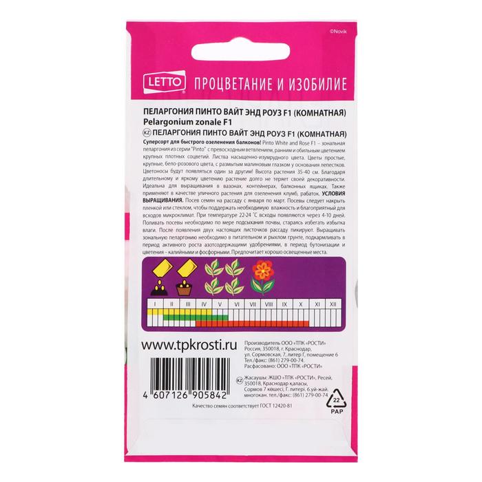 Семена цветов Пеларгония "Пинто Вайт энд Роуз", F1, 4 шт