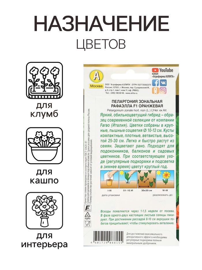 Семена цветов Пеларгония "Рафаэлла", оранжевая, F1, 5 шт