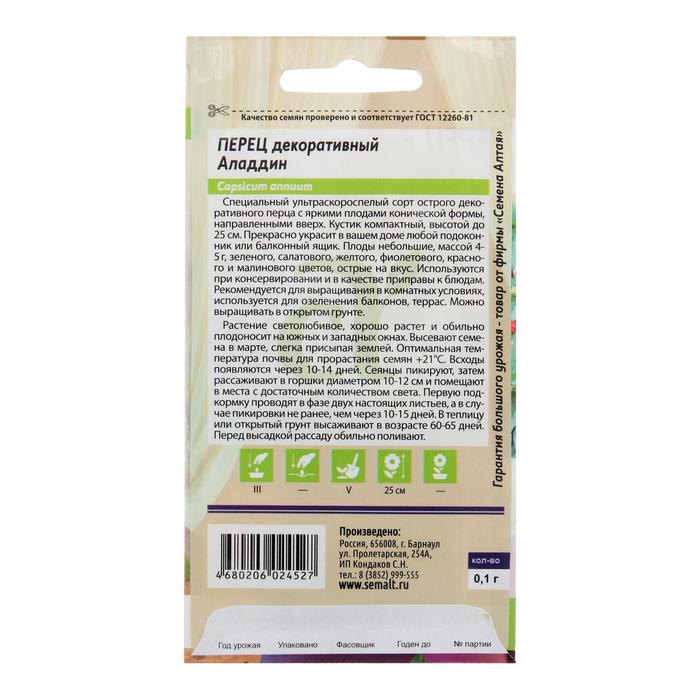 Семена цветов Перец «Аладдин», декоративный, «Семена Алтая», 0.1 г