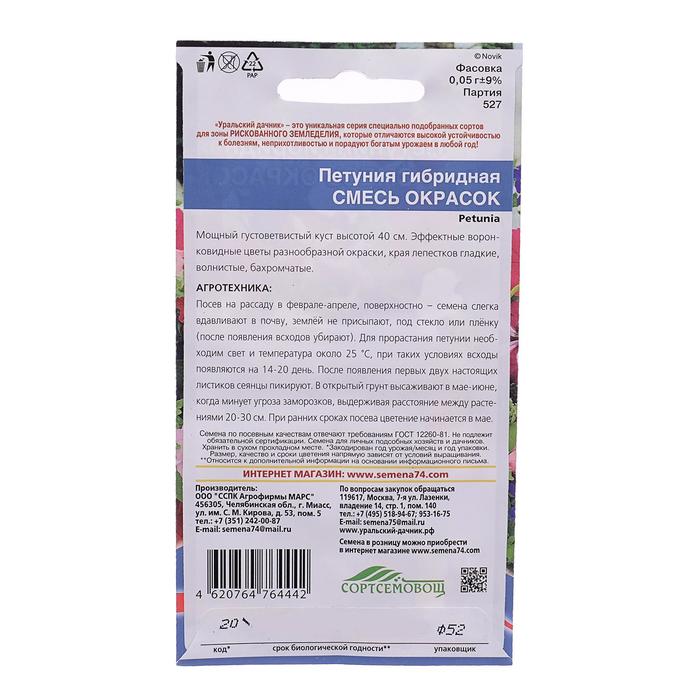 Семена Цветов Петуния гибридная «Смесь окрасок», 0.05 г, «Уральский Дачник»