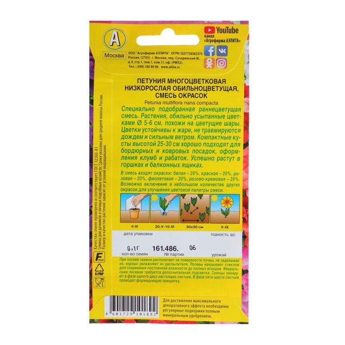 Семена цветов Петуния "Обильноцветущая", смесь окрасок, О, 0,1 г