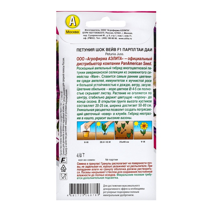 Семена цветов Петуния "Шок вейв" F1 парпл таи даи, ц/п, 4 шт