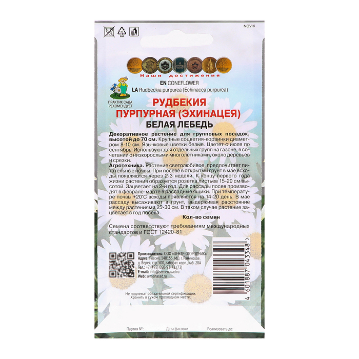 Семена цветов Рудбекия пурпурная "Лебедь", Белая, 0,1гр.