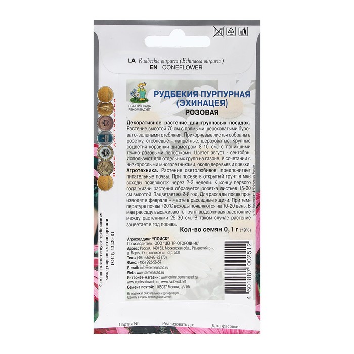 Семена цветов Рудбекия "пурпурная Розовая" 0,1 г