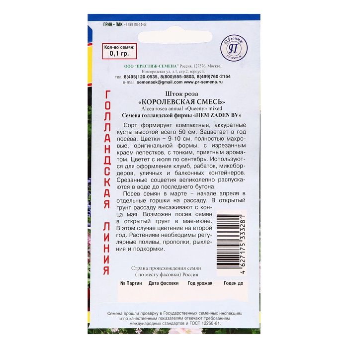 Семена цветов Шток роза "Королевская смесь", 0,1 гр