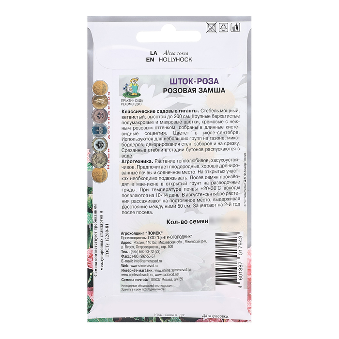 Семена цветов Шток-роза «Розовая замша», 0.1 г