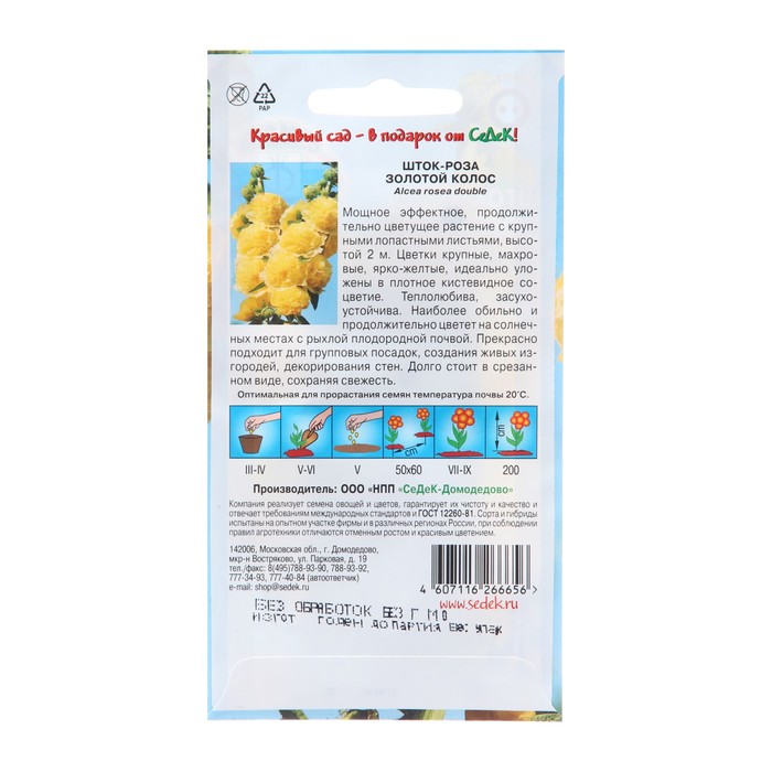 Семена цветов Шток-роза "Золотой колос", Евро, 0,1 г