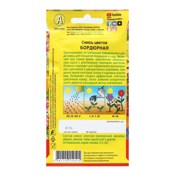 Семена Цветов Смесь цветов "Бордюрная", 2 г