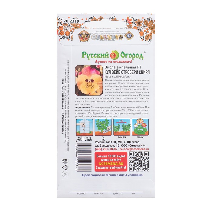 Семена цветов Виола "Кул Вейв Стробери Свирл", F1, 3 шт.