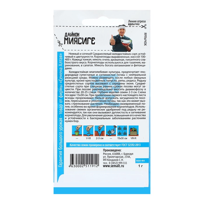 Семена Дайкон "Миясиге", Сем. Алт, ц/п, 1 г