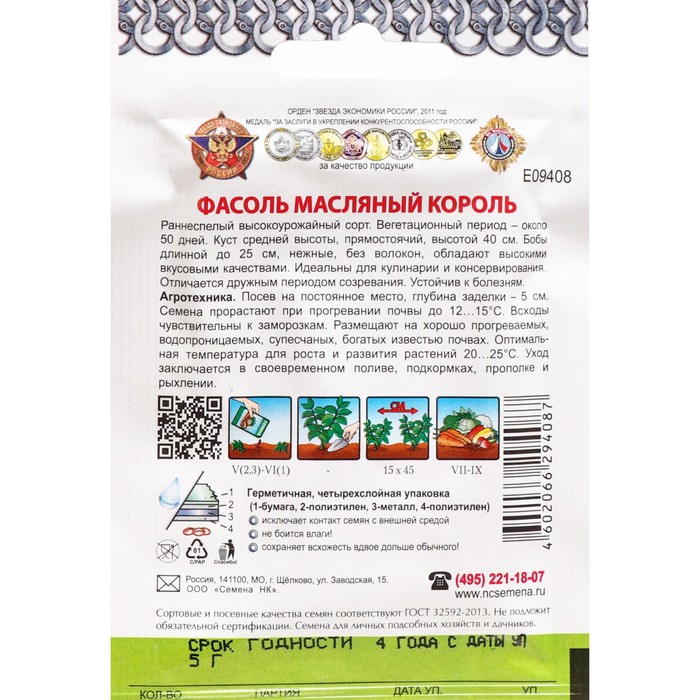 Семена Фасоль спаржевая "Масляный король", 5 г