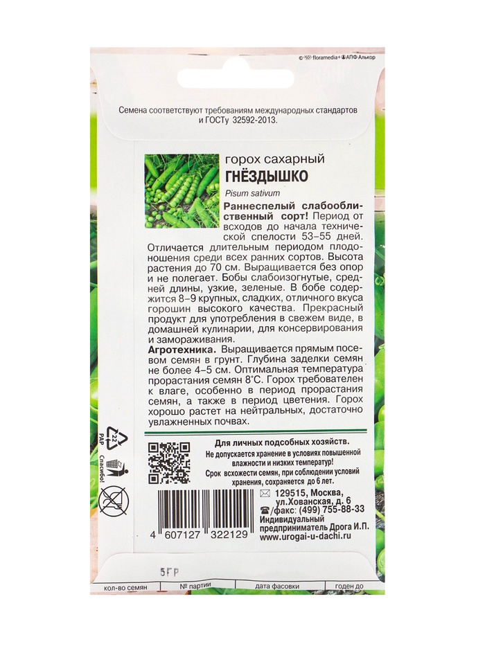 Семена Горох "ГНЁЗДЫШКО", сахарный, безлистный,5 гр