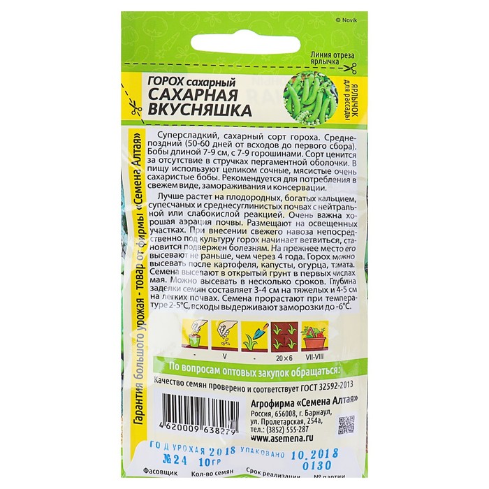 Семена Горох «Сахарная Вкусняшка», среднепоздний, 10 г, «Семена Алтая»
