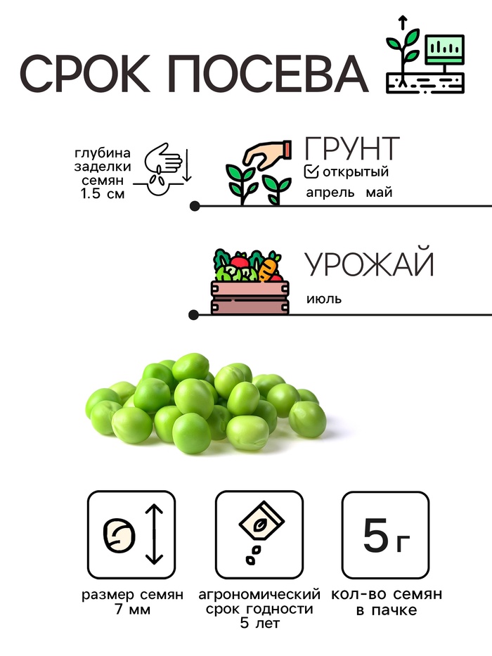Семена Горох сахарный «Рафинад», 5 г, «Рецепты дедушки Никиты»