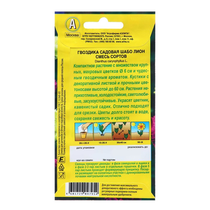 Семена Гвоздика садовая Шабо Лион, смесь сортов Одн Ц/П 0,05 г