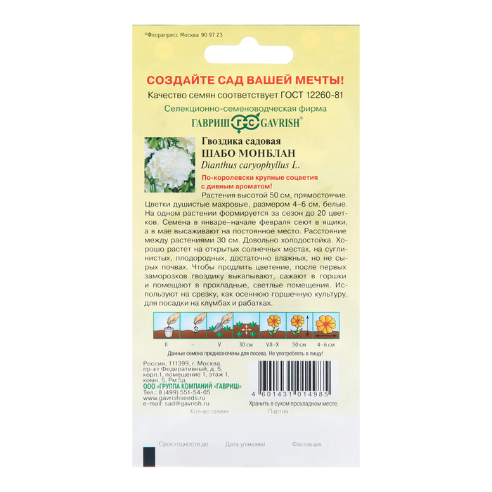 Семена Гвоздика "Шабо Монблан", ц/п, 0,05 г