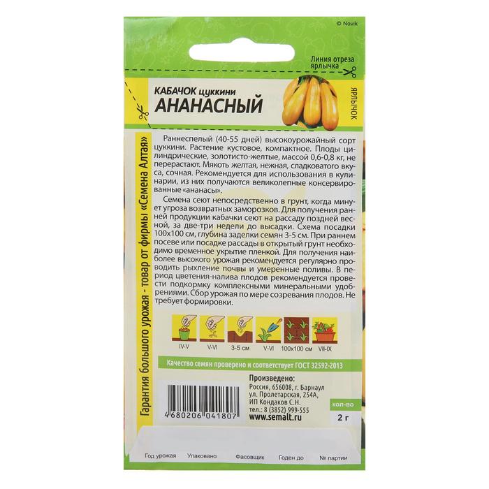 Семена Кабачок цукини «Ананасный», 2 г, «Семена Алтая»