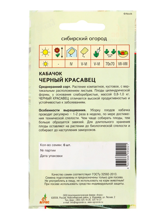 Семена Кабачок «Чёрный красавец», 6 шт., «Агрос»