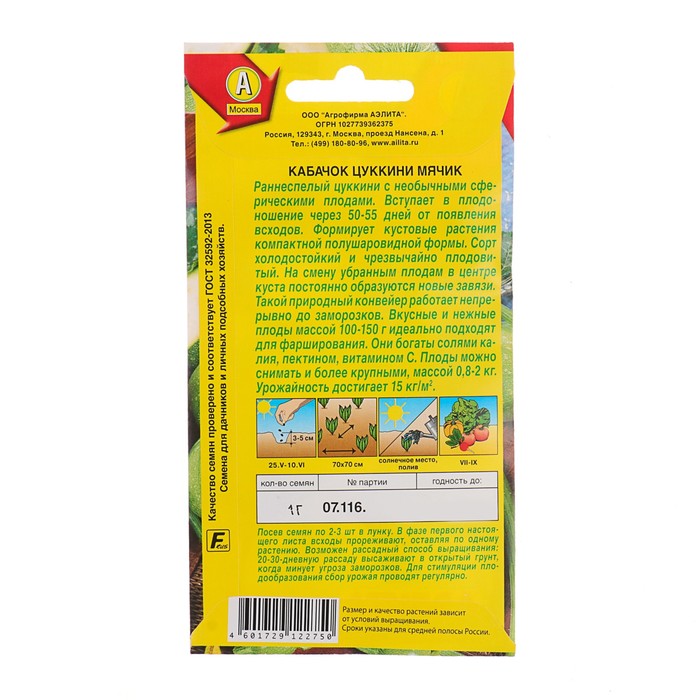 Семена Кабачок цукини «Мячик», 1 г, раннеспелый, «Аэлита»